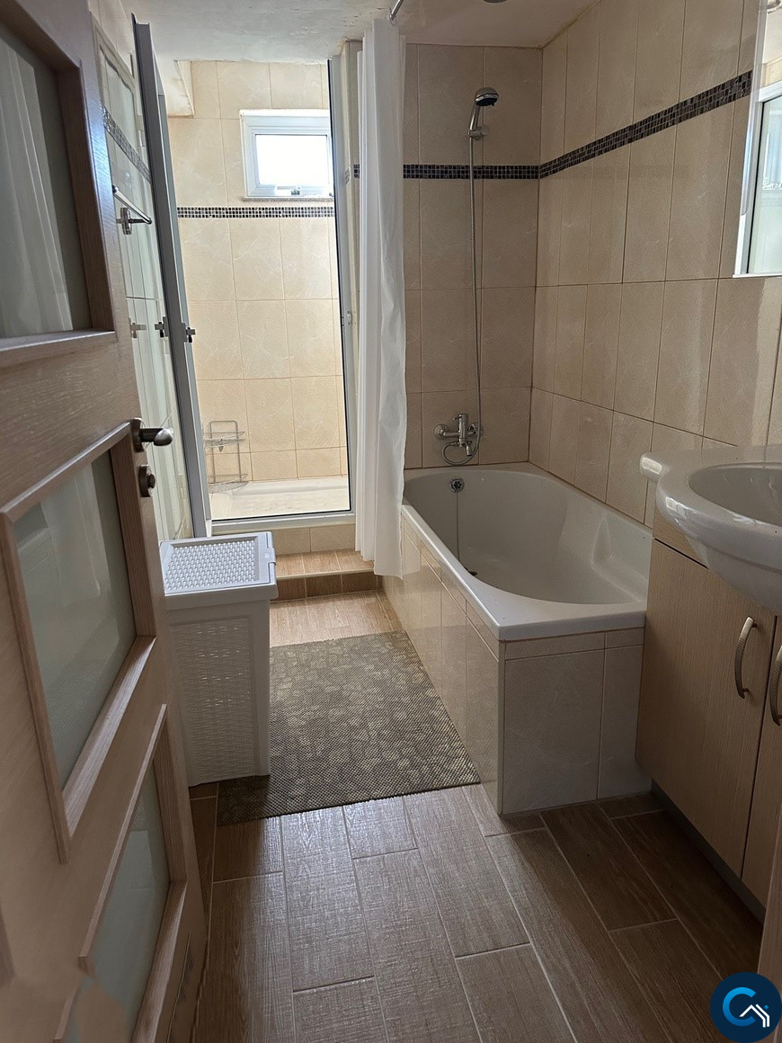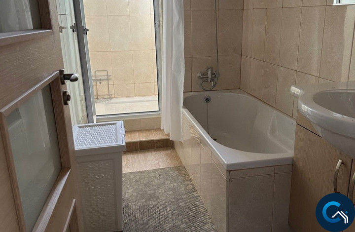 The Apartment consists of two bedrooms, one bathroom with two showers and one bath, one seperate toilet, a large living room, a large kitchen and a balcony with sea view.