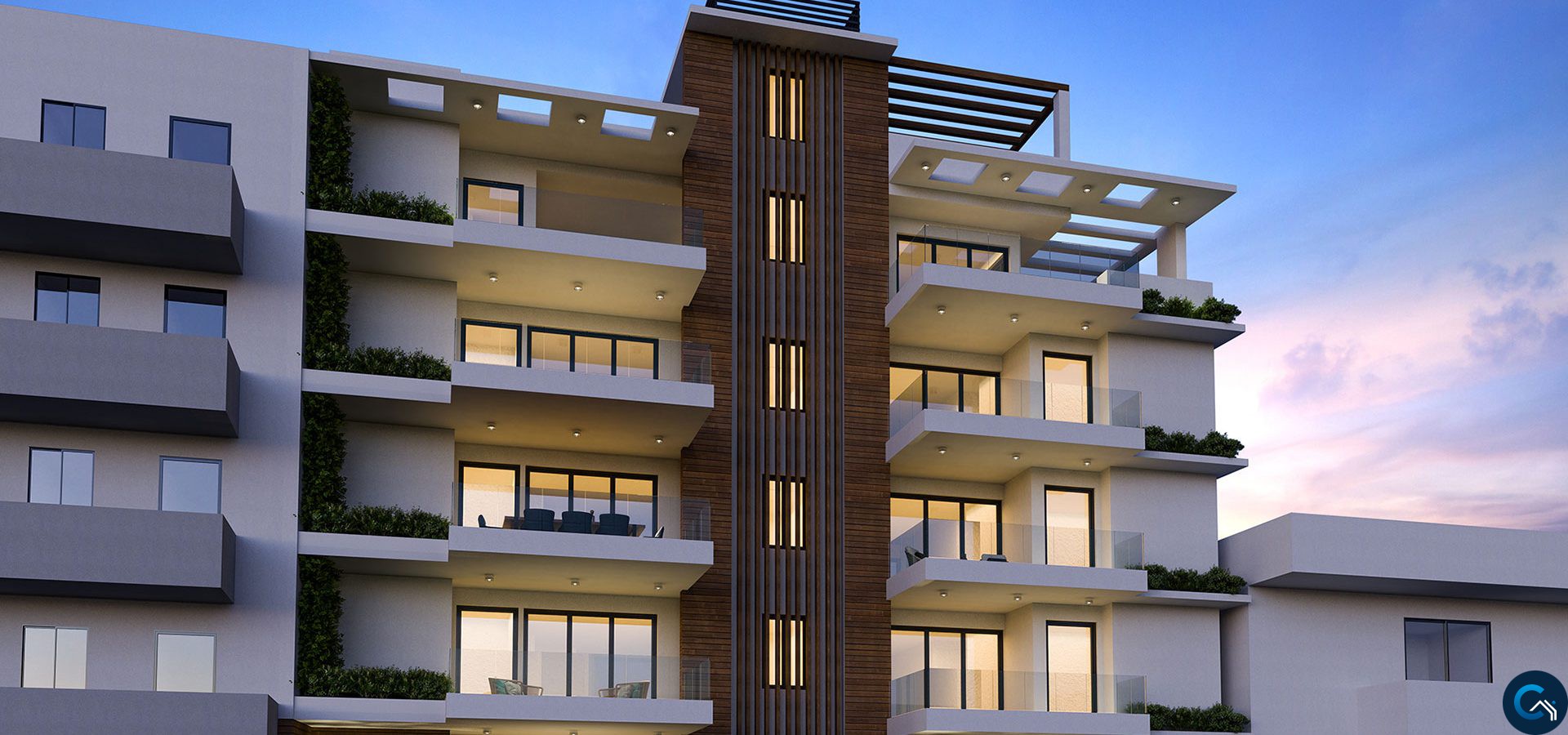 Thoughtfully designed, all apartments offer open plan spacious living αreαs, with large verandas viewing the city. All apartments include one en-suite master bedroom as well as a second bedroom and an extra bathroom, vast open plan kitchen and living room space with covered verandas. The penthouse projects luxury liνing at its finest offering three bedrooms, one spacious en-suite master bedroom along with two other bedrooms with one shored bathroom and one guest toilet room, comfortable and luxury liνing room area and kitchen with a ο large veranda and one roof garden exclusively for residents of the penthouse.