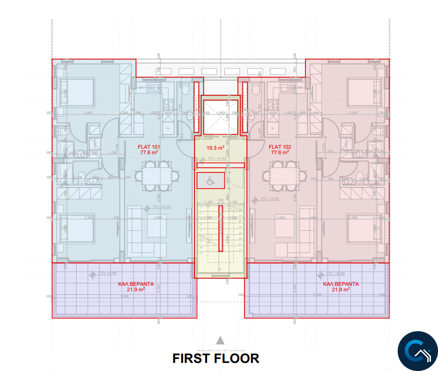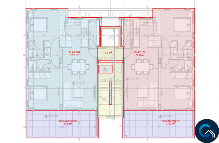 - 77,6 m2 covered living area each unit