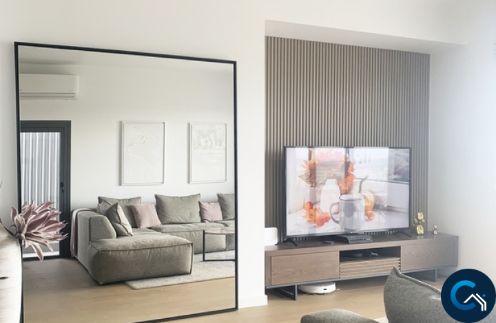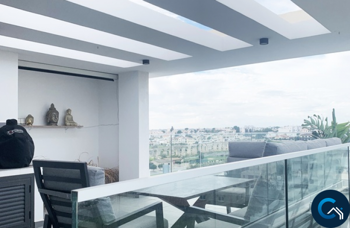 ID #5805For sale by owner 2 Bedroom Penthouse, total area 132m2 with a large roof garden in an exclusive residence, located in prestigious area near Kamares aqueduct. The apartment is finished to the highest standard, including wooden floors in all the rooms, 3 build in wardrobes, marble kitchen top, aluminium frame windows with soundproofing and luxury designer furniture in every room. Kitchen features all required appliances with energy certificate A, including oven/microwave, extractor hood, dishwasher, cooker and a washing machine with a dryer. All rooms in the apartments are equipped with AC units with wifi control. Roof garden offers fantastic views over Kamares aqueduct, salt lake and Larnaca. Roof garden has a separate storage and a bathroom, also includes designer furniture and all made up kitchen area and an outdoor cinema installation. Apart from the roof garden there is a 14m2 balcony. The building was finished in September 2021, has 8 apartments and no walls interconnect with neighbours, making living more private. The residence is conveniently located very close to Metropolis Mall. Larnaca city centre is 5 minutes away and only short drive is needed to reach a motorway. There is a storage room and one parking place that comes with an apartment. No VAT is applicable.