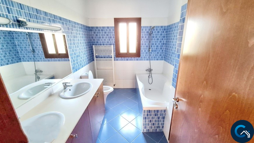 Ground floor: covered entrance door, flowing into a welcoming entrance hall, adjoined by a bedroom with an ensuite shower and a toilet. There is a large living room with fireplace and dining room, a large kitchen plus separate kitchenette/laundry room, as well as a spacious TV room, and guest toilet. All the areas include air-conditioning as well as a central heating system.