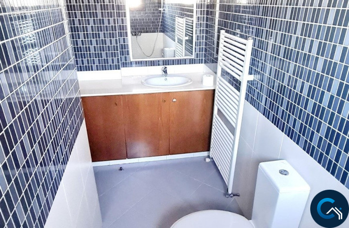 Externally: A large 9m x 5m swimming pool (liner needs to be replaced), a covered patio of 48 m2, a courtyard with artificial grass and a mature garden with large trees and shrubs (including palm trees in the front and back of the house), and two covered parking spaces. The garden wall is topped with aluminium fencing, and there is an alarm system with internal and external sensors.