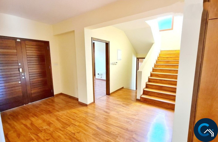 First floor: 4 spacious bedrooms, one of which has and ensuite shower and toilet as well as ample cupboard space. The other 3 bedrooms share a large bathroom with toilet and bath. There is also a sunny office nook on the first-floor landing. All the bedrooms include air-conditioning as well as a central heating system.