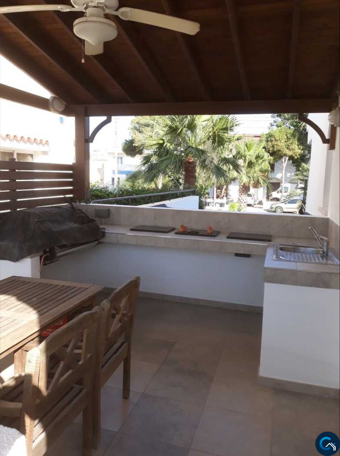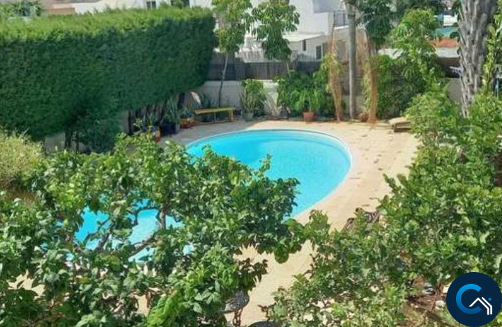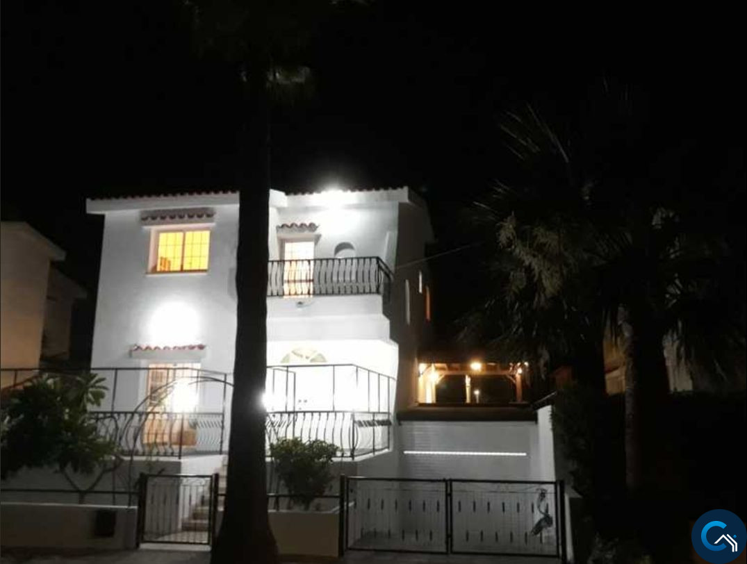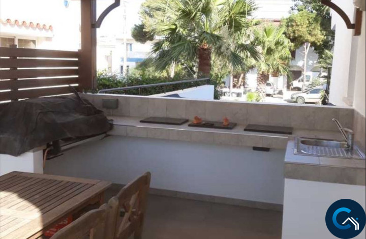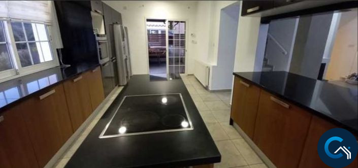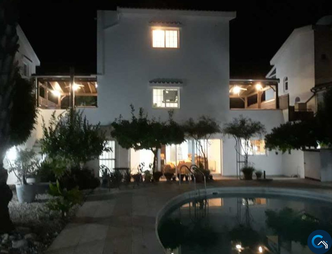 ID #121232Spacious 3-level villa is now available for sale. On the top floor there are 3 bedrooms (1 en suite) and 1 main bathroom. On the first floor there is an open plan fully equipped kitchen next to the outdoor BBQ area overlooking the pool and garden, open planned breakfast bar, with dining area and living room, as well as a guest WC. The basement floor of the house can be used as a separate flat as it consists of 2 bedrooms, an office, a lounge room, bathroom and kitchen/utility room. On the territory of the villa there is a big swimming pool, beautiful garden, pergola, BBQ area and covered garage. The house is unfurnished and fully equipped with central heating and a/c units.