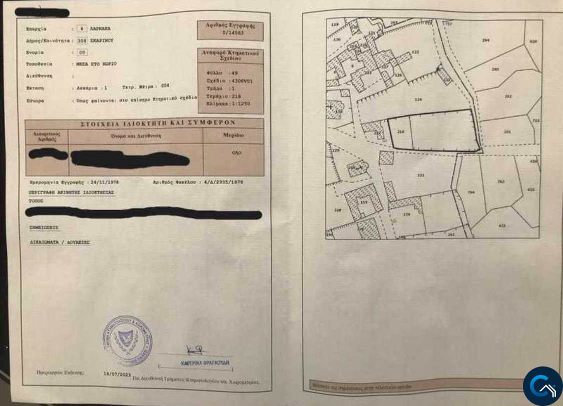 Residential land 1004m2 for sale in larnaca cyprus