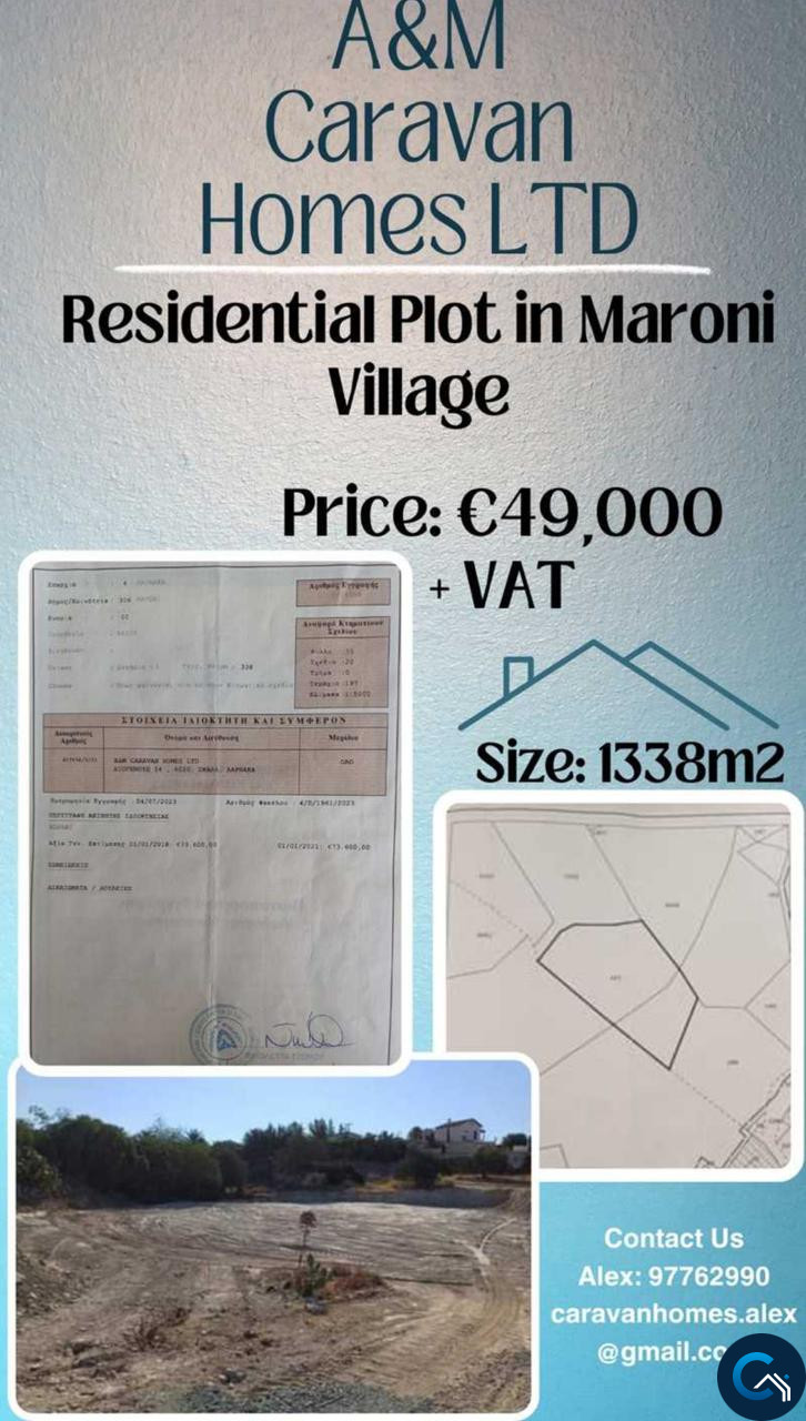 Residential land 1338m2 for sale in larnaca cyprus