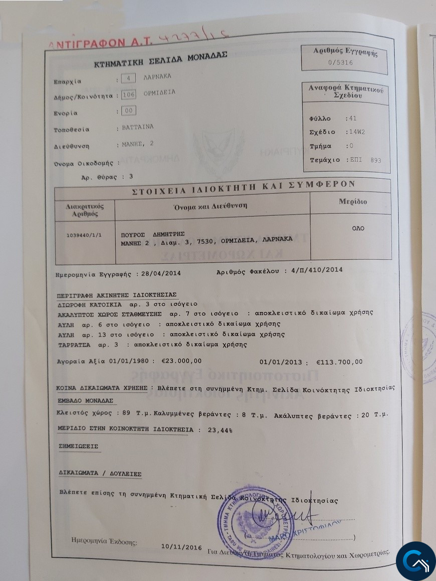 2 bedroom maisonette with title deed in Ormidia larnaca cyprus